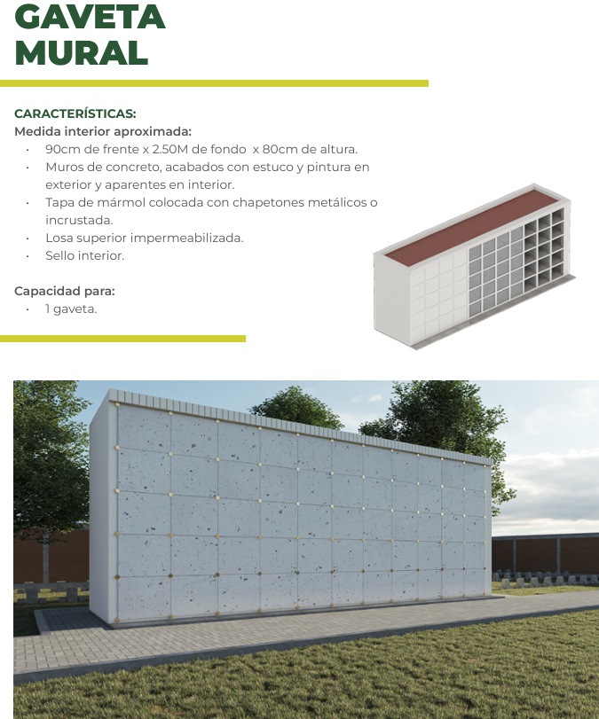 adquirir tu propiedad de descanso final (gavetas, capillas, o nichos).
